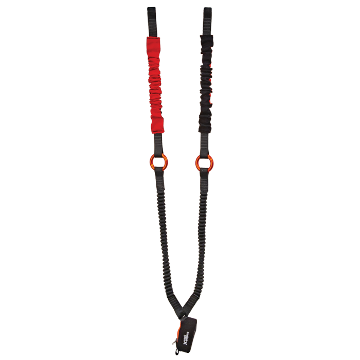 Spezial Y-lanyard mit einem integrierten Stoßdämpfer (140 kg) und flexiblen Armen, die durch Aluminiumringe getrennt sind.