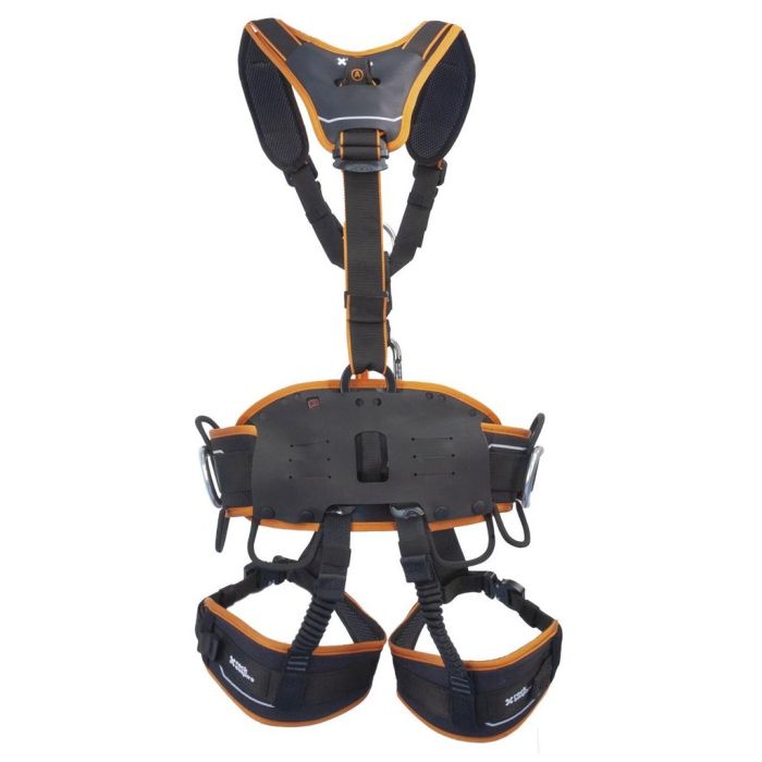 - Mit 6 Ausrüstungsschlaufen und Stahl-Positionierungsringen gemäß EN 358.