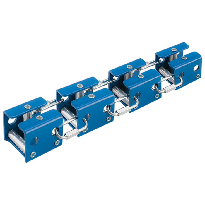 Ein Satz aus vier Blöcken mit Rollen aus Aluminiumlegierung auf Edelstahlstiften.